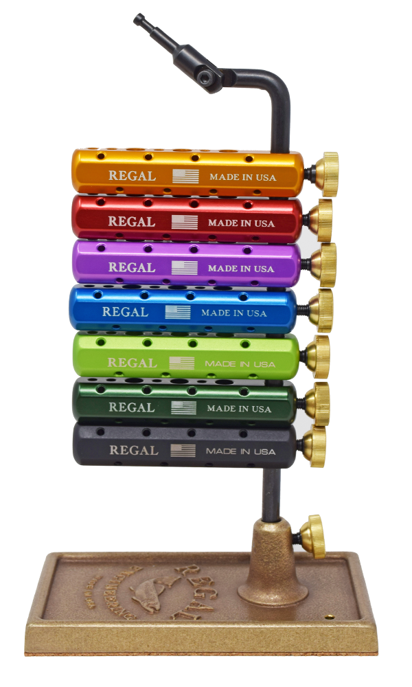 When you are concentrating on tying a fly, it is so easy to lose track of your tools. After many conversations with professional tiers over a few beers, we developed the Regal toolbar. It’s great for holding small scissors and other common tools that are easily misplaced when you are focused on your work. For a small fee, we also customize the toolbars with the same colors as our vises, so you can mix and match to create a combo that works for you.